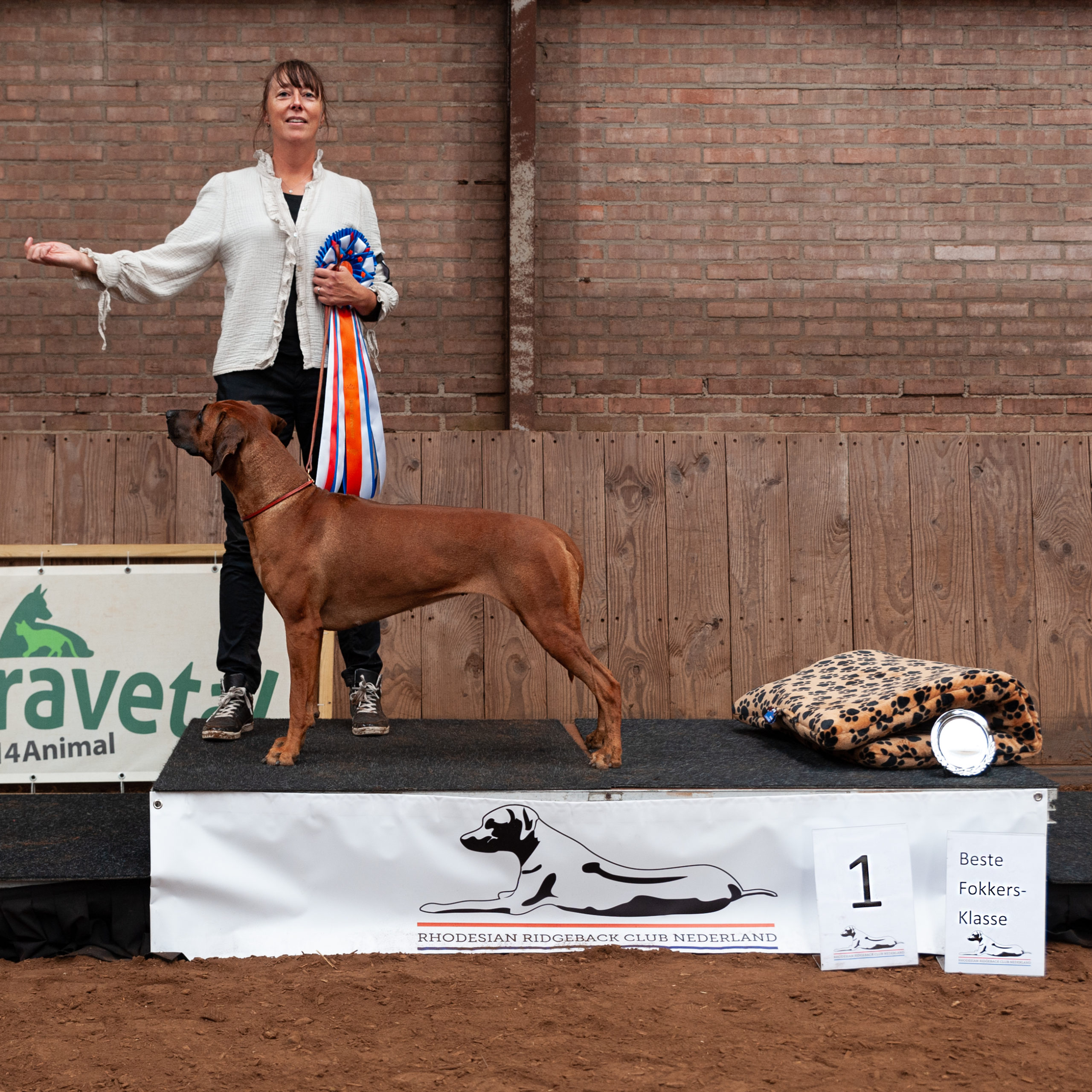 We doen af en toe mee met shows met Chadi. Ze heeft meer dan 4 keer Uitmuntend gehaald. (Een van de eisen uit het Verenigingsfokregelement van de Rhodesian Ridgeback Club Nederland is minimaal 2 x Uitmuntend). Karakter en uiterlijk worden op de show beoordeeld. In 2022 is de Lionteasers ” Beste Fokker van 2022″ geworden en Chadi is tot “Beste Teef van 2022” op de Kampioensclubmatch is uitgeroepen.